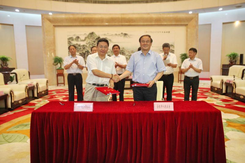 7月13日下午,中國中鐵股份有限公司與合肥市政府簽署戰(zhàn)略合作協(xié)議,股份公司監(jiān)事會主席劉成軍、合肥市長凌云出席儀式并見證簽約,股份公司副總經(jīng)濟(jì)師、投資發(fā)展部部長馮慧光和合肥市委常委、常務(wù)副市長韓冰分別代表雙方簽署戰(zhàn)略協(xié)議。