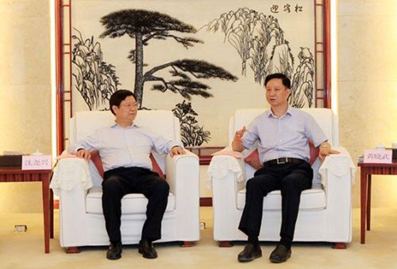 5月18日上午,中鐵(上海)投資有限公司黨委書記、董事長沈堯興在安徽淮北會見了淮北市委書記、市人大常委會主任黃曉武,就深化中國中鐵與淮北市合作交換了意見。